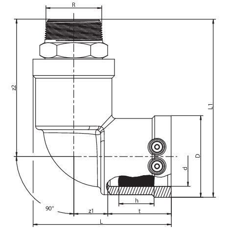 Koleno elektro PE100 SDR 11 přechod PE-MOSAZ 50 - 6/4" vnější závit WUN 90° FRIALEN