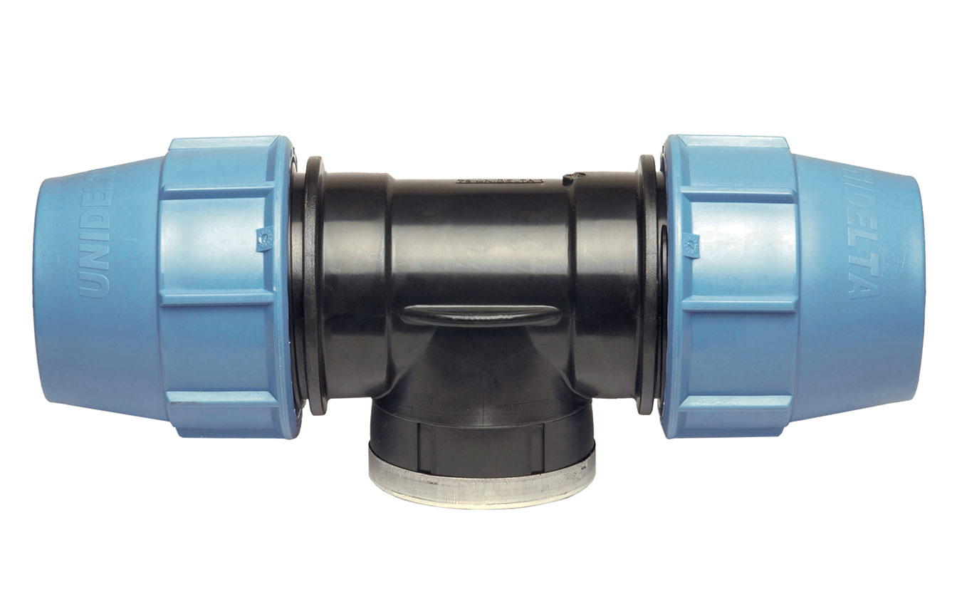 Svěrná tvarovka UNIDELTA pro rozvětvení řadu PE potrubí.
